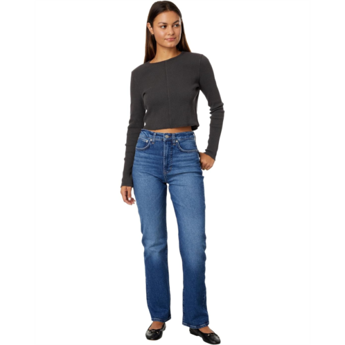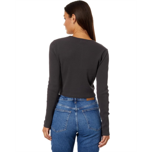 Style your casual weekend look by wearing the Madewell Waffle Knit Crewneck Crop Tee. Crafted from airy, supersoft waffle knit, the lightweight tee has cool topstitching details. It has a crew neckline, long sleeves, and a straight hemline.