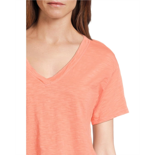 Looking for a chic and laid-back tee? Look no further than Mod-o-doc Short Sleeve V-Neck Boxy Tee. With its classic V-neckline, short sleeves, and stylish boxy silhouette, this tee is the perfect addition to your wardrobe. Effortlessly versatile, this tee pairs well with jeans, leggings, or shorts for a casual yet polished look. Featuring a straight hem, this tee offers both comfort and style in one.