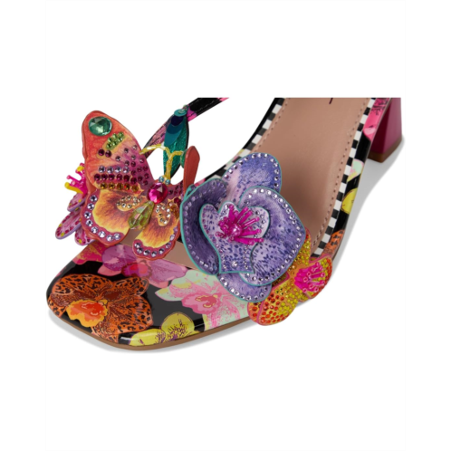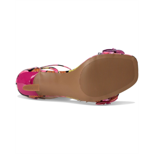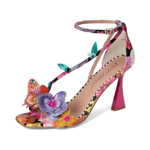 - Dimensional florals add colorful whimsy to sculpted stiletto heels in the Blue by Betsey Johnson Camile sandals. These heeled sandals are designed with a rubber insole and faux leather lining. The polyvinyl chloride upper features a floral detail and an allover floral pattern. The adjustable ankle strap with a buckle closure offers a secure fit. Add a colorful twist to your outfits with these floral sandals.