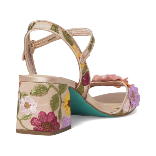 - Whimsical and beautiful, the Blue by Betsey Johnson BLARE floral heels are the perfect statement piece to bring out your inner wild side. These heels feature a bold print pattern and are accented with playful floral details on the toe strap, adding a touch of fun to your look.