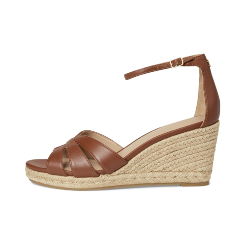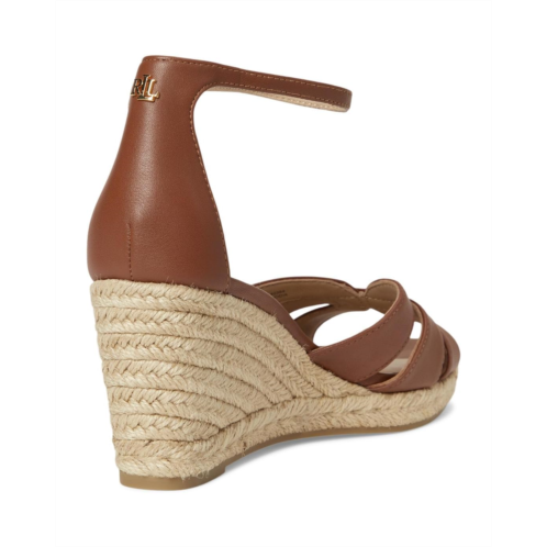 폴로 - Lauren Ralph Lauren's luxurious take on the quintessential espadrille, the Nellie Nappa Leather Espadrille showcases a multi-strap nappa leather upper set on a jute-wrapped wedge. A polished 'LRL' brass-finished logo at the back adds a signature finish. This classic espadrille features a jute-wrapped wedge that adds natural texture while offering comfortable lift. A padded insole and smooth leather lining ensure all-day comfort.