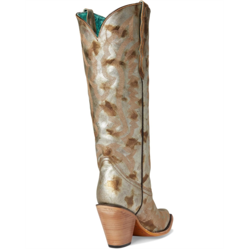 - The Corral Boots Z5223 are heeled boots with a gold metallised leather & embroidery tall top and a pointed toe design. These knee-high boots are made of a leather upper, insole, and lining. Their side pull handles offer easy on and off.