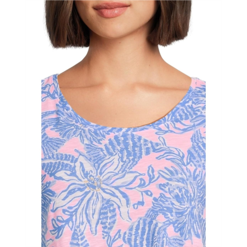 Add a touch of modern glam to your holiday looks wearing the Lilly Pulitzer Etta Scoop-Neck Top. Featuring multi-colored floral print all over, the pullover slub tee has a scoop neckline with short sleeves and curved hem.