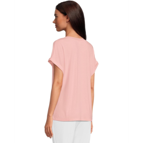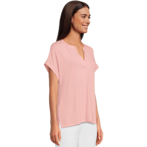 The Tommy Bahama Kauai Split Neck Short Sleeve top is a breezy essential designed with a soft and stretchy blend of fabric. It offers a lightweight feel with a flattering drape. The split V-neckline and short sleeves with rolled cuffs add to its pullover style.
