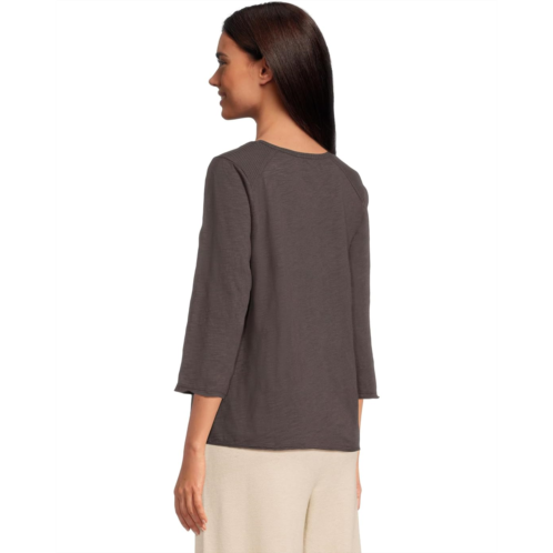 Mod-o-doc 3/4 Sleeve Waffle Mix Media Open Crew Neck Tee