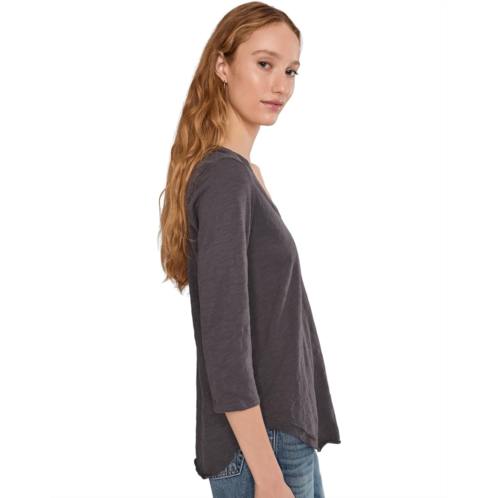 Mod-o-doc 3/4 Sleeve V-Neck Tee with Curved Hem