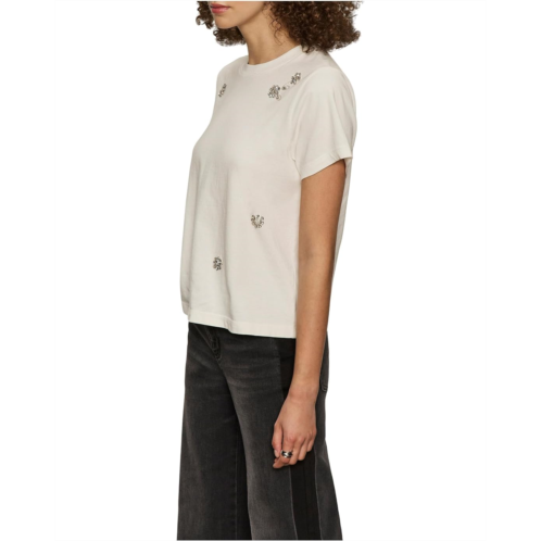 Sparkle meets effortless style in the Sanctuary Embellished Tee! Designed to elevate your everyday look, this short-sleeve tee pairs classic comfort with a touch of glam. The timeless crew neck and classic fit make it an easy staple for your wardrobe, while the playful, floral, sparkly embellishments bring just the right amount of shine to your outfit. Perfect for day-to-night styling, this pull-on tee ensures all-day ease with a polished finish that catches the light and everyone's attention.
