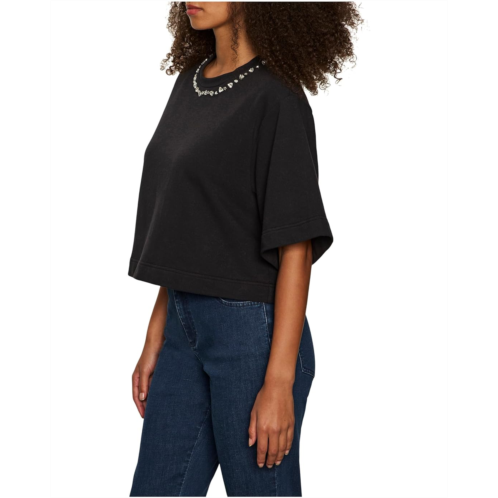 The Sanctuary Embellished Semi Crop Tee brings a touch of dazzling detail to your most comfortable casual wear. Designed with a classic fit and a crew neck, this short-sleeve semi-crop tee offers a flattering silhouette that works effortlessly with high-waist jeans, skirts, or layered looks. The short elbow sleeves provide a relaxed, breezy feel, while the pull-on style makes it easy to slip into your go-to outfit. Its standout feature? A delicately embellished neckline that adds just the right amount of sparkle for day-to-night versatility, making every moment Instagram-worthy.