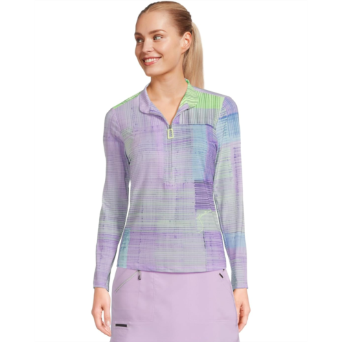 Jamie Sadock Long Sleeve Tartan Print Sunsense 1/4 Zip Top