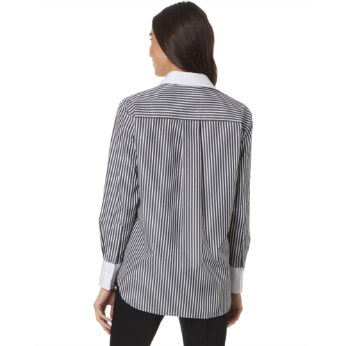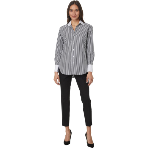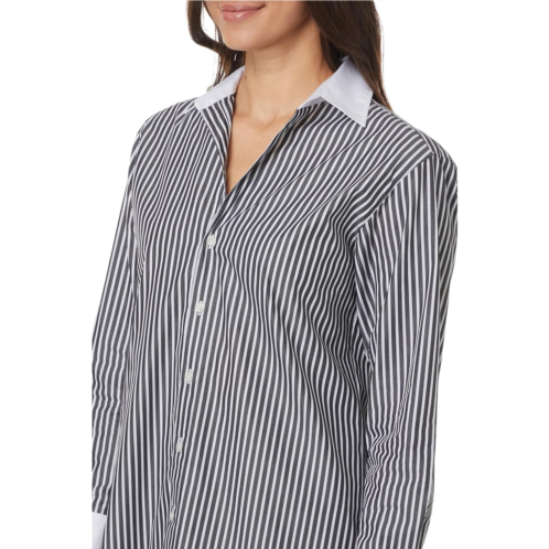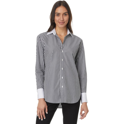 The Elliott Lauren Parallel Lines is a button-front stripe shirt with contrast cuffs and collar. Featuring a stripe pattern allover, this button-down shirt is made from cotton fabric that keeps you cool and comfortable all day. The long sleeves, collared neckline, and straight hem add to its style. This cotton shirt is perfect for formal and casual occasions.