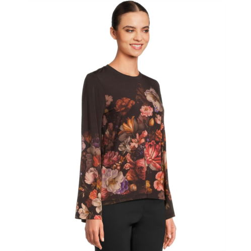 Give your casual look a classy update wearing the Johnny Was The Janie Favorite Flare Sleeve Crew Neck Top. Moody and romantic, this floral crew-neck top features long sleeves and rich, painterly bloom print that stand out against a dark, dramatic background. With its soft feel and graceful drape, it's the perfect blend of sophistication and effortless boho charm.