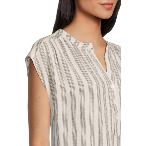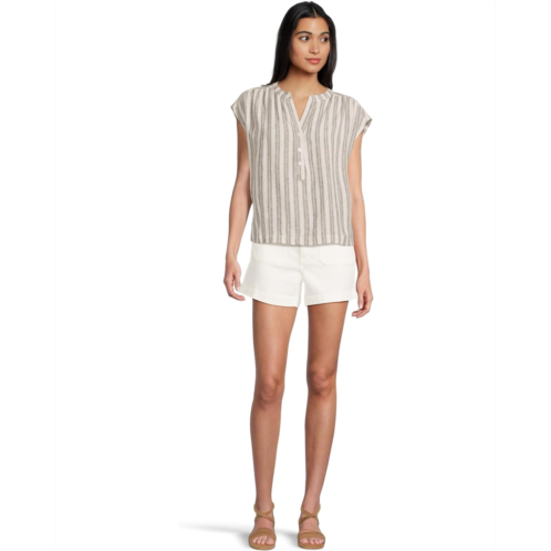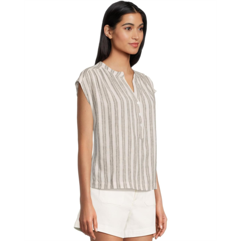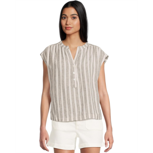 Look chic and classy wearing Sanctuary By The Bay Shell Top, designed with multicolored striped print in a standard-length silhouette. The pull-on style top features a notch neckline, cap sleeves, a half-button closure, and a straight hem.
