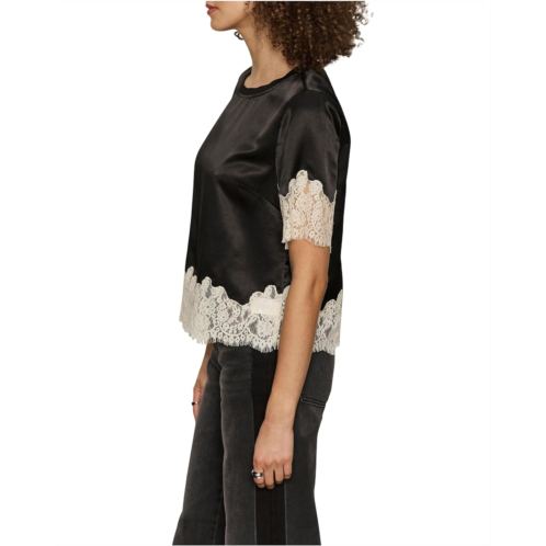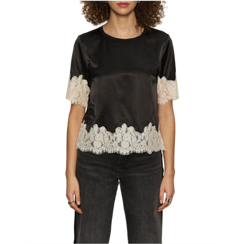 Simple and sophisticated in style, the Sanctuary One Of A Kind Satin Lace Top is perfect for everyday wear. The pull-on style top features a crew neck, short sleeves with lace details, and a standard-length silhouette with a beautiful lace hem.