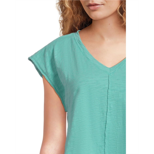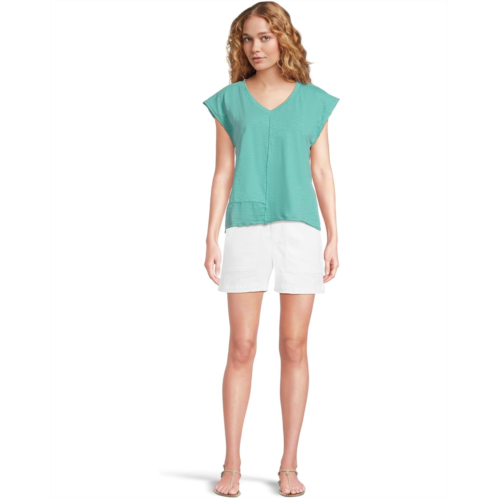 Flex your comfortable and chic vibe donning the Mod-o-doc Cap Dolman Sleeve Mix Media Top. The pull-on style top features a V-neckline, cap sleeves, and a straight hem. The side seaming detail at the bottom front adds to the visual interest.