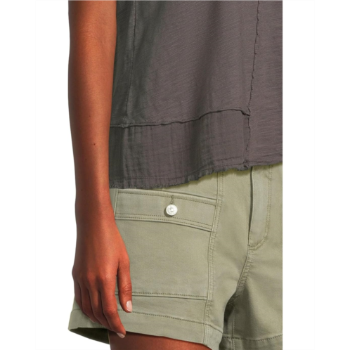 Flex your comfortable and chic vibe donning the Mod-o-doc Cap Dolman Sleeve Mix Media Top. The pull-on style top features a V-neckline, cap sleeves, and a straight hem. The side seaming detail at the bottom front adds to the visual interest.