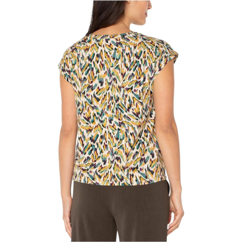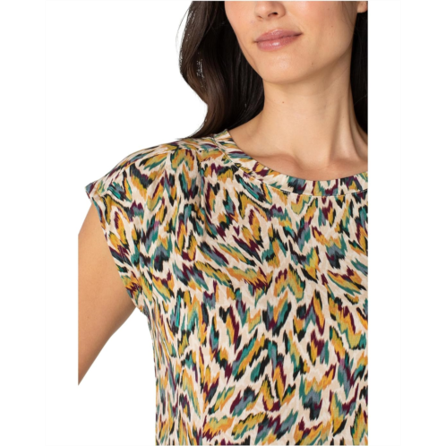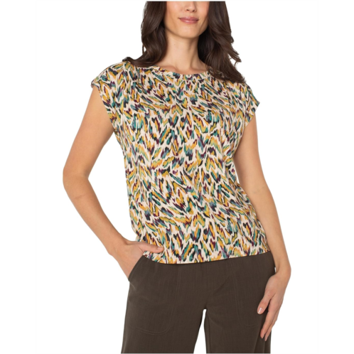 Perfect for any occasion, the Liverpool Los Angeles Petite Sleeveless Shoulder Pleat Boat Neck Knit Top features a boat neck and a stunning print, giving you a fresh and versatile addition to your wardrobe. It is designed with short cap sleeves.