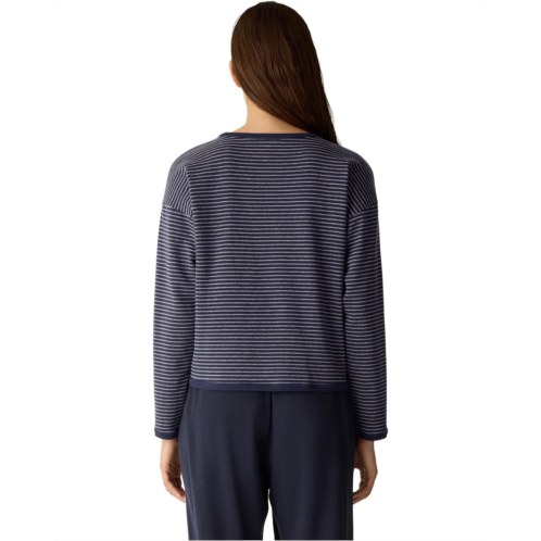 Eileen Fisher Striped Cozy Brushed Terry Round Neck Cropped Box Top