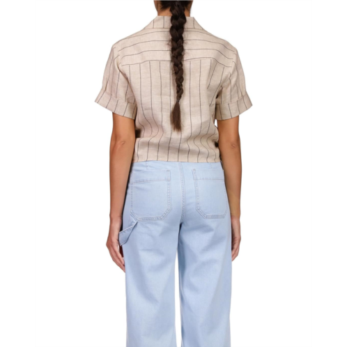 Dive into the coastal vibes by wearing the Sanctuary Ocean Shirt. Decked with horizontal stripes throughout, this cool shirt features a sleek spread collar neckline along with short sleeves.