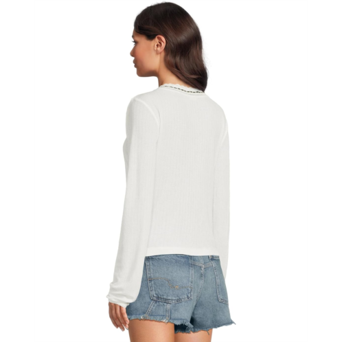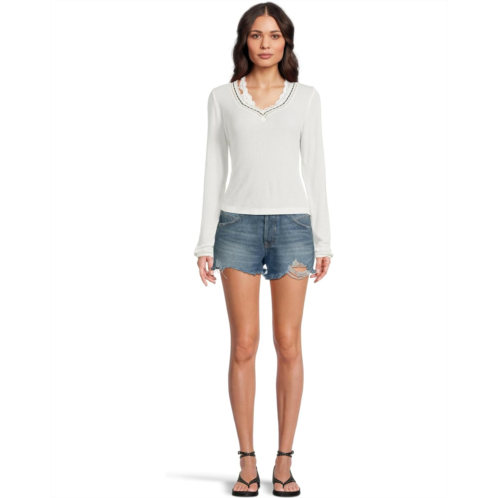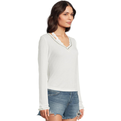 Slotted ribbon detailing around this neckline gives this pointelle Free People Only You Long Sleeve top from Intimately the perfect femme touch. This LDS knit pullover style fitted top features soft, light ribbed pointelle fabrication, V-neckline, fitted long sleeves, lace trim at neckline, and slotted ribbon detailing.*Why We<3 It:* An elevated basic for endless dainty looks.