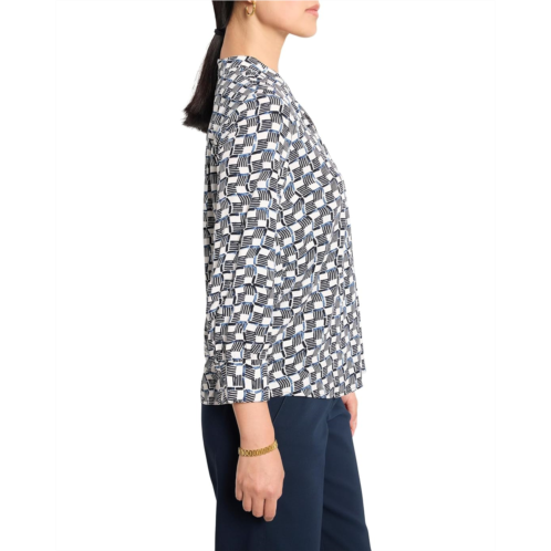 Showcase the blend of timeless artistry with modern elegance wearing NIC+ZOE Basket Weave Ecovero Shirt. This earth-friendly top redefines effortless style. Featuring a pull-on design, it includes a stand collar and cuffs at the end of its three-quarter sleeves for a polished look. Slightly shaped at the hips, it offers a flattering feminine silhouette. Crafted mindfully with Lenzing EcoVero from sustainable wood sources, its production incorporates recycled process water, making it an eco-conscious choice for versatile and elevated wear.