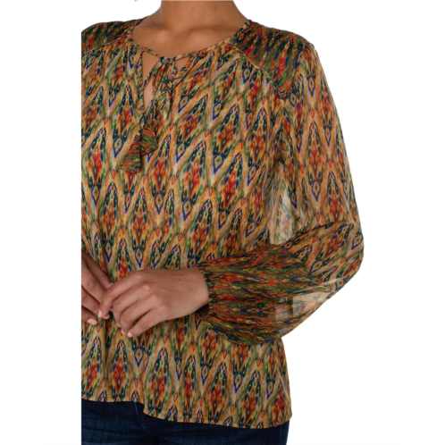 Liverpool Los Angeles Long Sleeve Double Layer Tie Front Woven Blouse