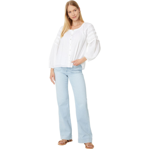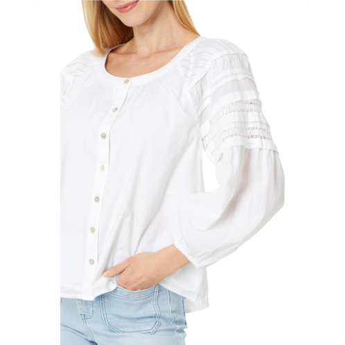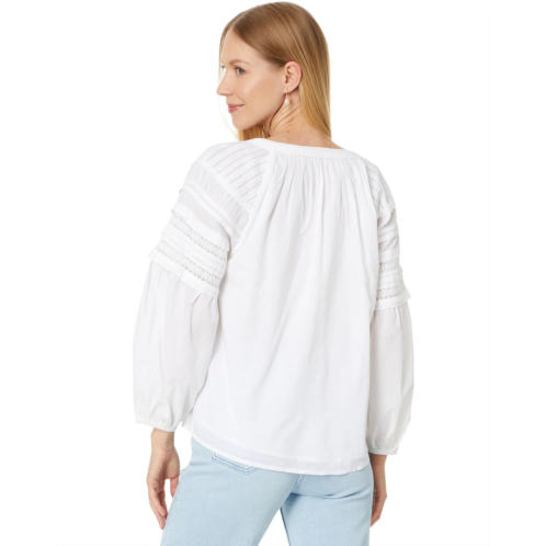 Styled with pintuck shirring on the neck and lace detailing on the sleeves, the Faherty Enna Top makes a great addition to your wardrobe. An ideal choice for casual outings and events, this button-down shirt is crafted from soft cotton fabric that offers all-day comfort and breathability. The long billowy sleeves with elastic cuffs and round neckline add to its style. This cotton shirt features a front buttoned closure with delicate shell buttons for easy wear. Stay chic and comfy by wearing this long-sleeve top.