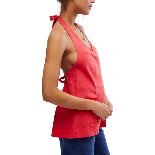 Show the diva you are by donning the Free People Scout Halter Top, crafted in a breathable construction and regular-fitted standard length silhouette. The top features a soft linen-blend, deep V-neckline, sleeveless design, button-front closures, pockets at front, and adjustable ties at the neck & back.