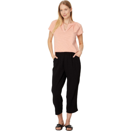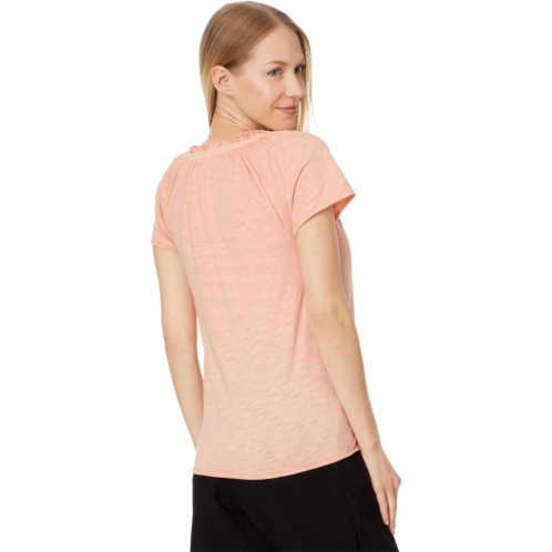 Step up your fashion game by styling the Mod-o-doc Short Sleeve Henley Swing Top, designed to offer a loose fit. The swing top features a henley neck with ruffled detailing, short sleeves, and slightly curved hem.