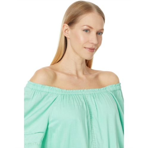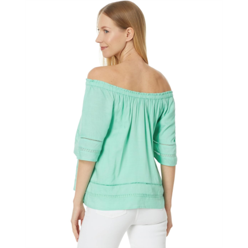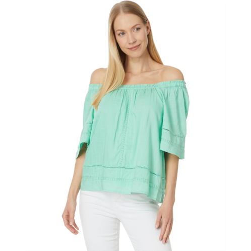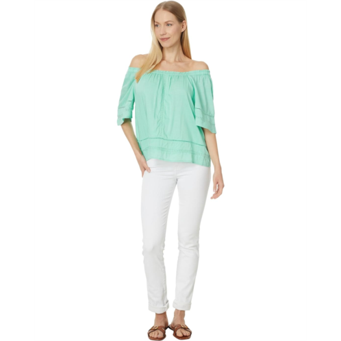 Liverpool Los Angeles Cropped Bell Sleeve Woven Top with Lace Trim