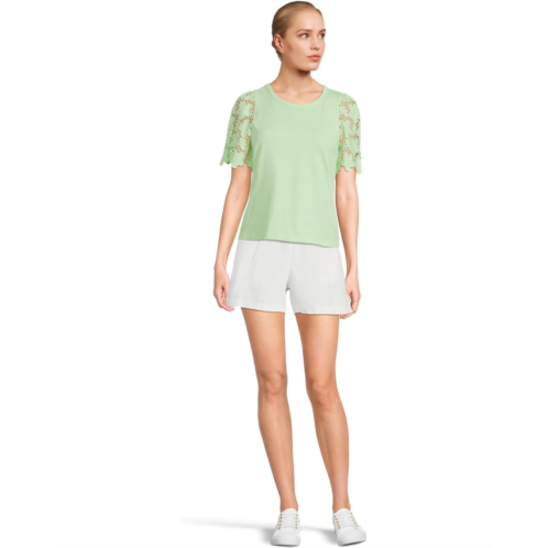 Meet the Lilly Pulitzer Sebene Knit Top, your go-to for polished charm and breezy elegance. Designed in a straight fit, this top drapes beautifully, offering a flattering silhouette that moves with you. The banded crew neckline adds a classic touch, while shirred shoulders create a hint of feminine structure. The real showstopper? The unlined eyelet elbow-length sleeves, blending delicate texture with an airy feel for a stylish yet breathable look. Finished with signature branded hardware and a pull-on design for easy, everyday wear, this top is the perfect mix of effortless sophistication and casual luxury.