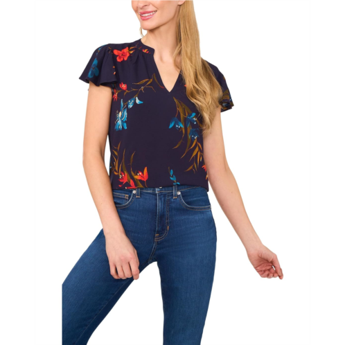 Effortlessly feminine, the CeCe V-neck Shirred Neck Flutter Sleeve Blouse features a delicate shirred neckline and flutter sleeves for a soft, flowy silhouette. The V-neck adds an elegant touch, while the viscose fabric provides superior comfort and breathability. Featuring an allover floral print, this printed top is perfect for both office wear and casual outings.