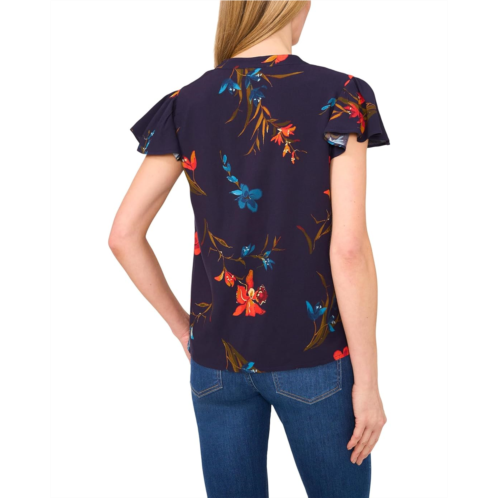 CeCe V-neck Shirred Neck Flutter Sleeve Blouse