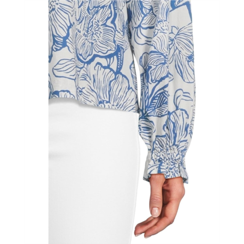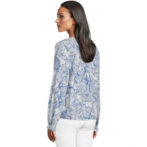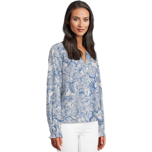 Bloom with effortless charm in the Lilly Pulitzer Aldina Top. Designed in a regular fit with a flattering notch neckline, this top brings together relaxed sophistication and playful femininity. The easy pull-on design ensures comfort without sacrificing polish, while the subtle button-down front adds a classic touch that transitions seamlessly from workdays to weekends. Long sleeves with elasticized cuffs deliver a soft, billowy effect, keeping your look breezy yet refined. Finished in Lilly Pulitzer's signature floral print, the Aldina Top is a statement of vibrant confidence.