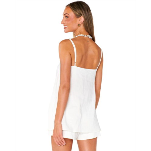 Simple and chic, the Show Me Your Mumu Abby Top screams subtle luxury! Thin cami straps, squared neck, built-in shelf bra liner, and extra long length set this pull-on style top apart from the rest. Pair back with a matching white linen trouser for a chic look.