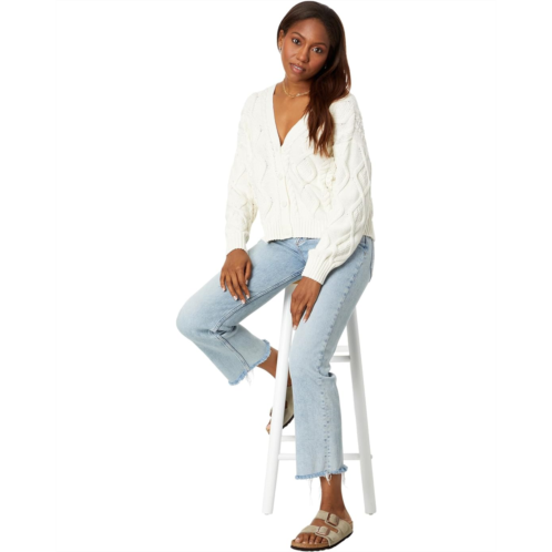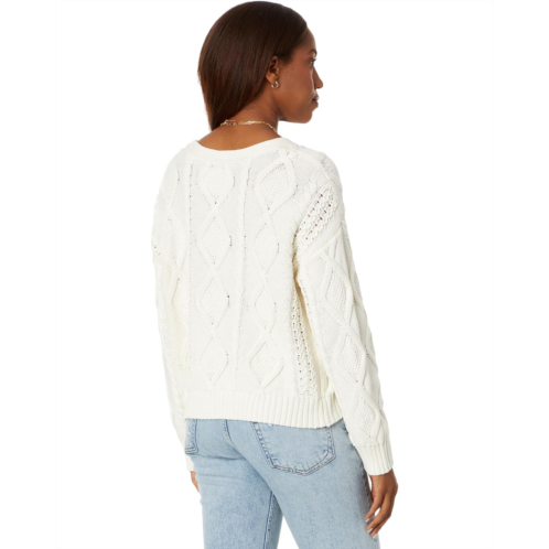 Add some glamor to your outfit wearing the Lucky Brand Cable Stitch Cardigan. This sweater comes with a V-neckline and long sleeves. Featuring a buttoned front closure, this sweater comes with a ribbed hem. Add this cardigan to your collection.