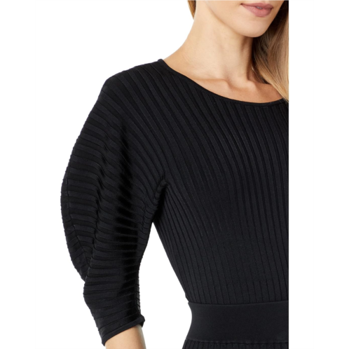 It's all in the details with the BCBGMAXAZRIA Pleated Sweater Top, a wide-rib knit shirt with exaggerated puff sleeves.
