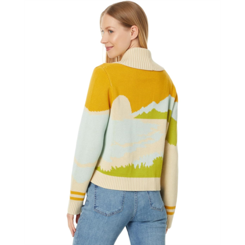 Immerse yourself in the style wonder of this colorful Pendleton Coastline Scenic Cardigan. With a charming coastal landscape display, the sweater features a foldover collar, V-neckline, buttoned front closure, and ribbed hem.