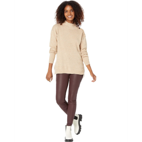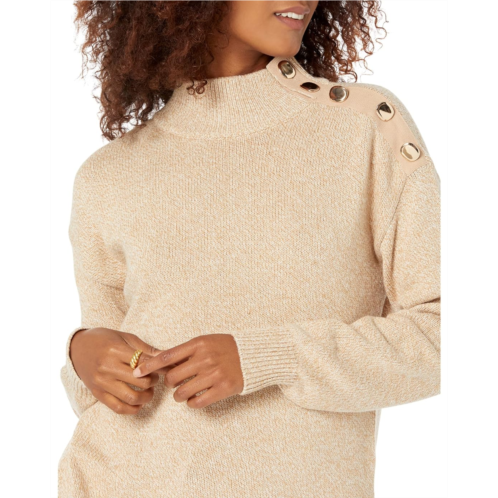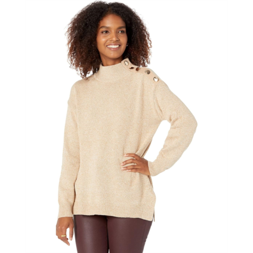 Elliott Lauren Need For Tweed Mock Neck Sweater with Button Detail On Shoulder