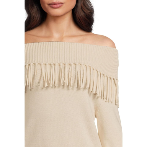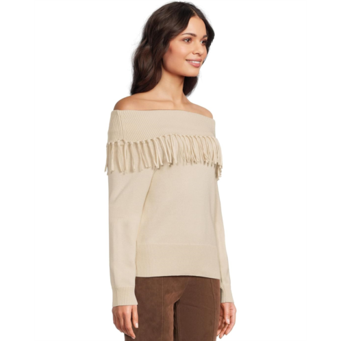 The Simone Fringe Sweater combines softness and statement with a wide off-the-shoulder neckline and bold fringe that wraps around the yoke. Designed to have a relaxed fit, this knit with Western-inspired edge makes for a fun addition to any sweater stack.