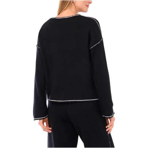 Vince Camuto V-Neck with Contrast Crochet Stitch At Seam
