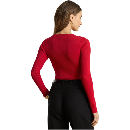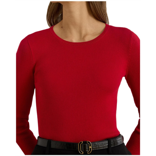 Dress up in comfort and sleek style wearing the Lauren Ralph Lauren Rib-Knit Cotton-Blend Crew Neck Sweater. Featuring a rib-knit construction, this cotton-blend ribbed crewneck sweater will never go out of style. It features long sleeves with ribbed cuffs, a metal plaque custom-developed with an 'LRL' logo at the front right hem, and a straight ribbed hem.