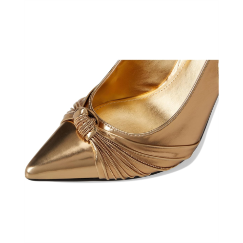 A must-have wardrobe staple, the Nine West Faive empowers you to step out in effortless style. Crafted with a sleek faux leather upper and lining, this chic pair features a stylish pointy toe and eye-catching knot detailing, adding a touch of flair to any ensemble. The slip-on closure ensures easy wear, while the sky-high stiletto heel offers an empowering boost of confidence. The durable synthetic rubber outsole provides added stability, making it perfect for day-to-night wear.