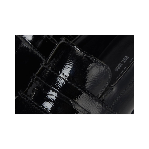 Loafer silhouette with round toe and stacked heel.