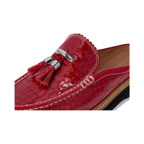 Meet your new obsession: The Donald Pliner Lyndall mule loafer. Crafted from high-shine, croc-embossed patent leather, this statement shoe stuns with its structured silhouette and glossy finish. The classic tassel detail and signature logo D-ring ornament add a touch of luxe charm, while the leather-lined interior and cushioned insole promise undeniable comfort with every stride. A rubber outsole offers confident grip, and the effortless pull-on design makes this mule as practical as it is polished.