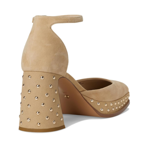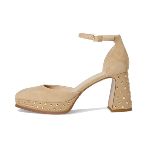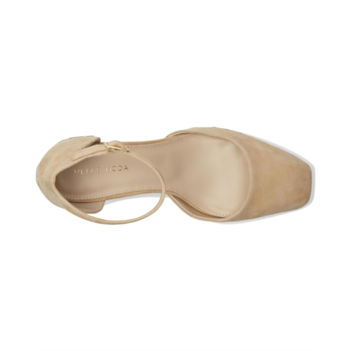 The Pelle Moda Dietta Heel is a two-piece platform pump with a square-toe design and soft suede upper. Wrapped in leather with metal grommets around the shoe, the heel is a block shape and the ankle strap has an adjustable buckle. These mid-top heels feature a faux leather lining and a padded faux leather insole.