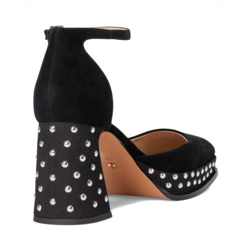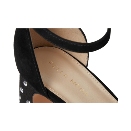 The Pelle Moda Dietta Heel is a two-piece platform pump with a square-toe design and soft suede upper. Wrapped in leather with metal grommets around the shoe, the heel is a block shape and the ankle strap has an adjustable buckle. These mid-top heels feature a faux leather lining and a padded faux leather insole.
