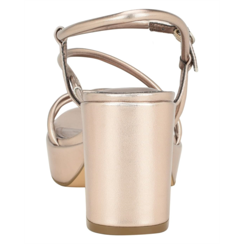 Be a fashion enthusiast and delve in classic comfort wearing the Calvin Klein Lilana Sandals. This square toe pair features man-made upper construction with buckled ankle strap closure and block heels.