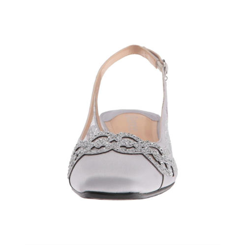 Slingback strap features a buckle closure at ankle strap.
