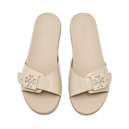 토리버치 - The Mellow Buckle Slide by Tory Burch is part of the Mellow collection-designed for effortless style combined with comfort. The slide features a clean, streamlined upper with a signature metal buckle detail, a cushioned footbed, and a rubber outsole.