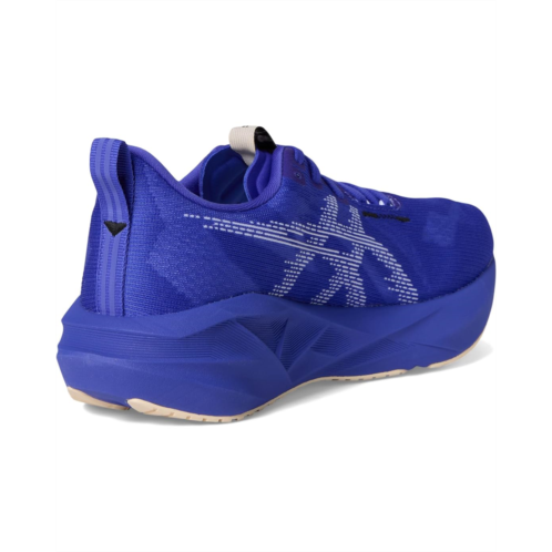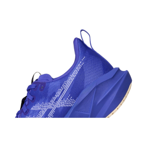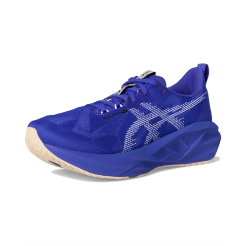 - The ASICS Novablast 5 shoes' midsole and outsole geometry help produce an energized ride. Their tongue wing construction in the polyester upper helps improve the fit while reducing tongue movement. These running shoes are made of a rubber insole and polyester lining. At least 75% of the shoe's main upper material is made with recycled materials to reduce waste and carbon emissions while the sockliner is produced with the solution dyeing process that reduces water usage by approximately 33% and carbon emissions by approximately 45% compared to the conventional dyeing technology. The FF BLAST MAX cushioning helps create softer landings and more energized toe-off during your training. These lace-up shoes are complemented with an engineered jacquard upper that offers more stretch, ventilation, and durability.
